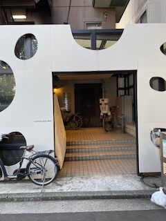 ビルの側道を進むと左手に穴の開いた白い壁に入口があります。